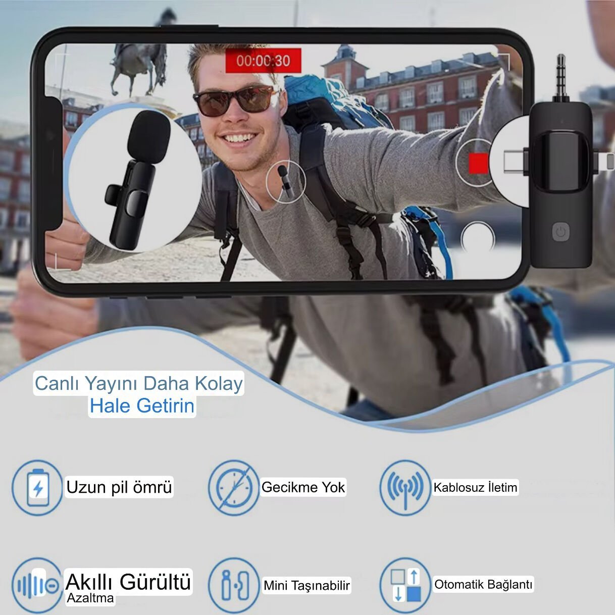 2li Kablosuz Yaka Mikrofonu: