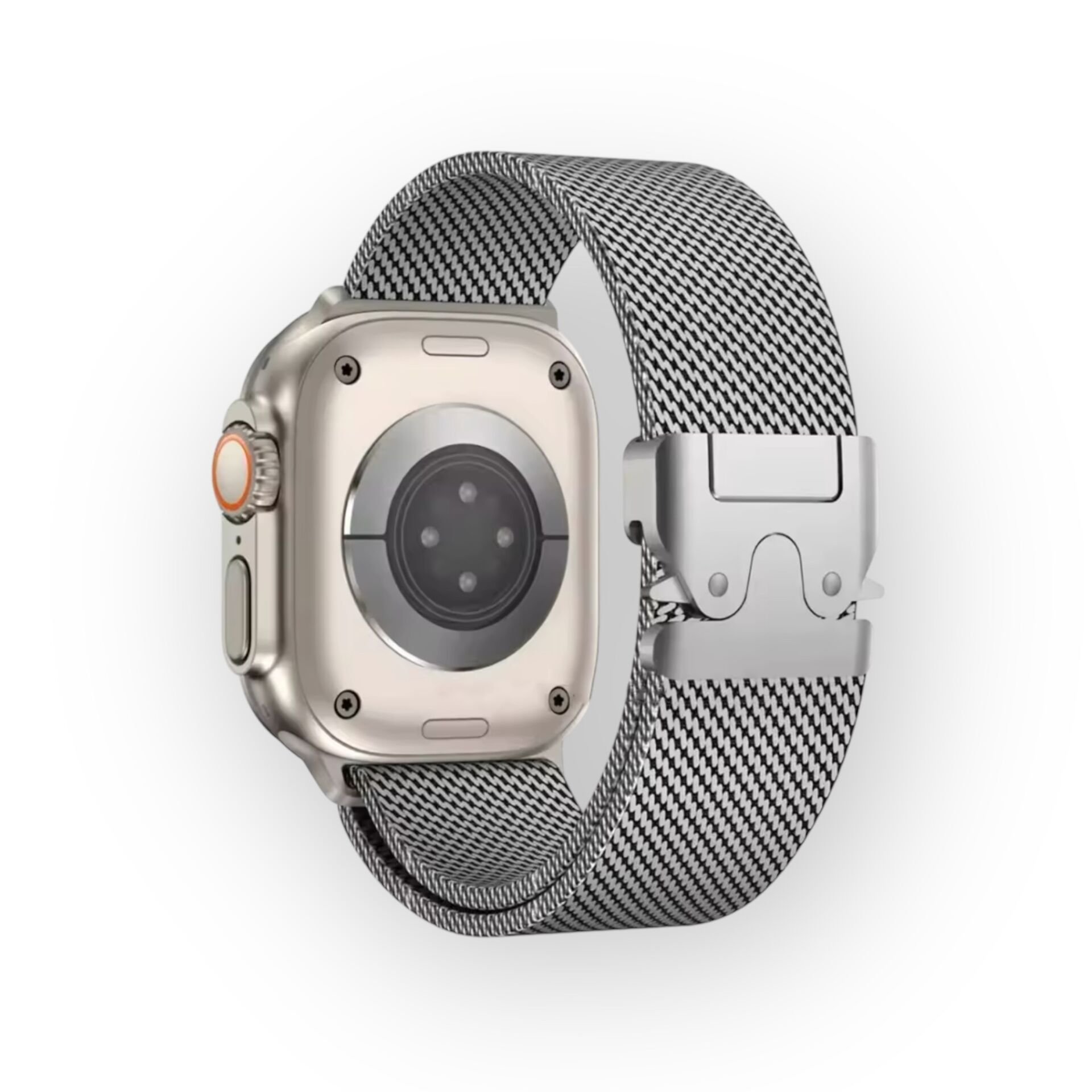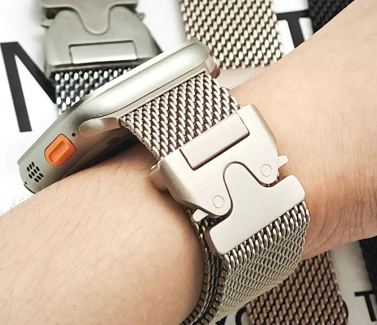 49M-Titanyum Loop Kordon zarif paslanmaz çelik örgü yapısı ve manyetik toka sistemiyle hem şıklık hem de konfor sunar. Nefes alabilen tasarımı, bileğe tam uyum sağlayarak gün boyu rahat kullanım sağlar. Şık, dayanıklı ve kolay ayarlanabilir yapısıyla günlük ve özel günler için idealdir.”