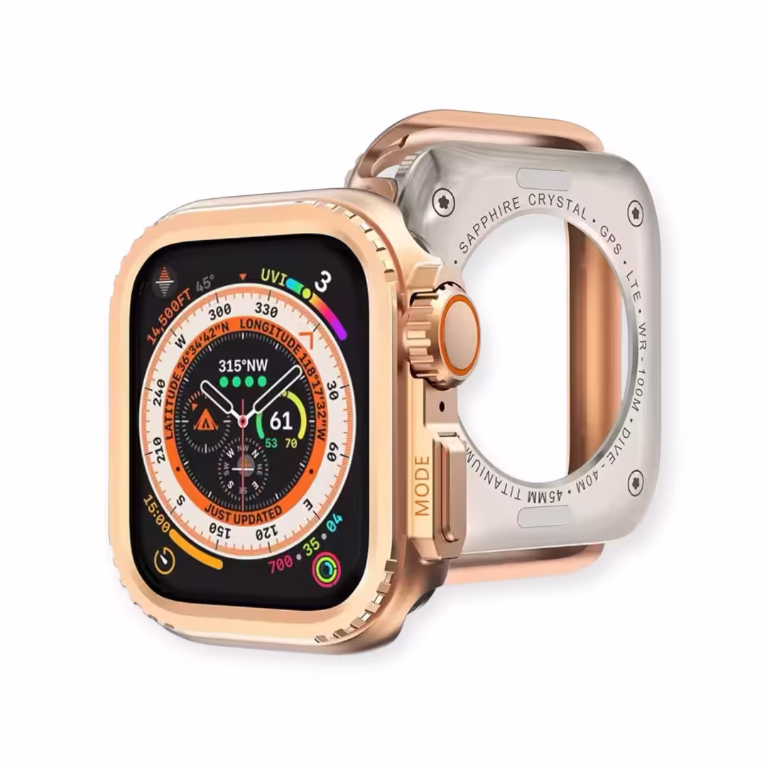 Premium titanyum alaşım ve safir kristal teknolojisini birleştiren kasalarımız, Apple Watch Ultra'nız için olağanüstü koruma sağlar. Her ayrıntısı hassas mühendislikle tasarlanmış bu kasa, akıllı saatinizin tüm özelliklerine tam erişim sunarken maksimum dayanıklılık sağlar.