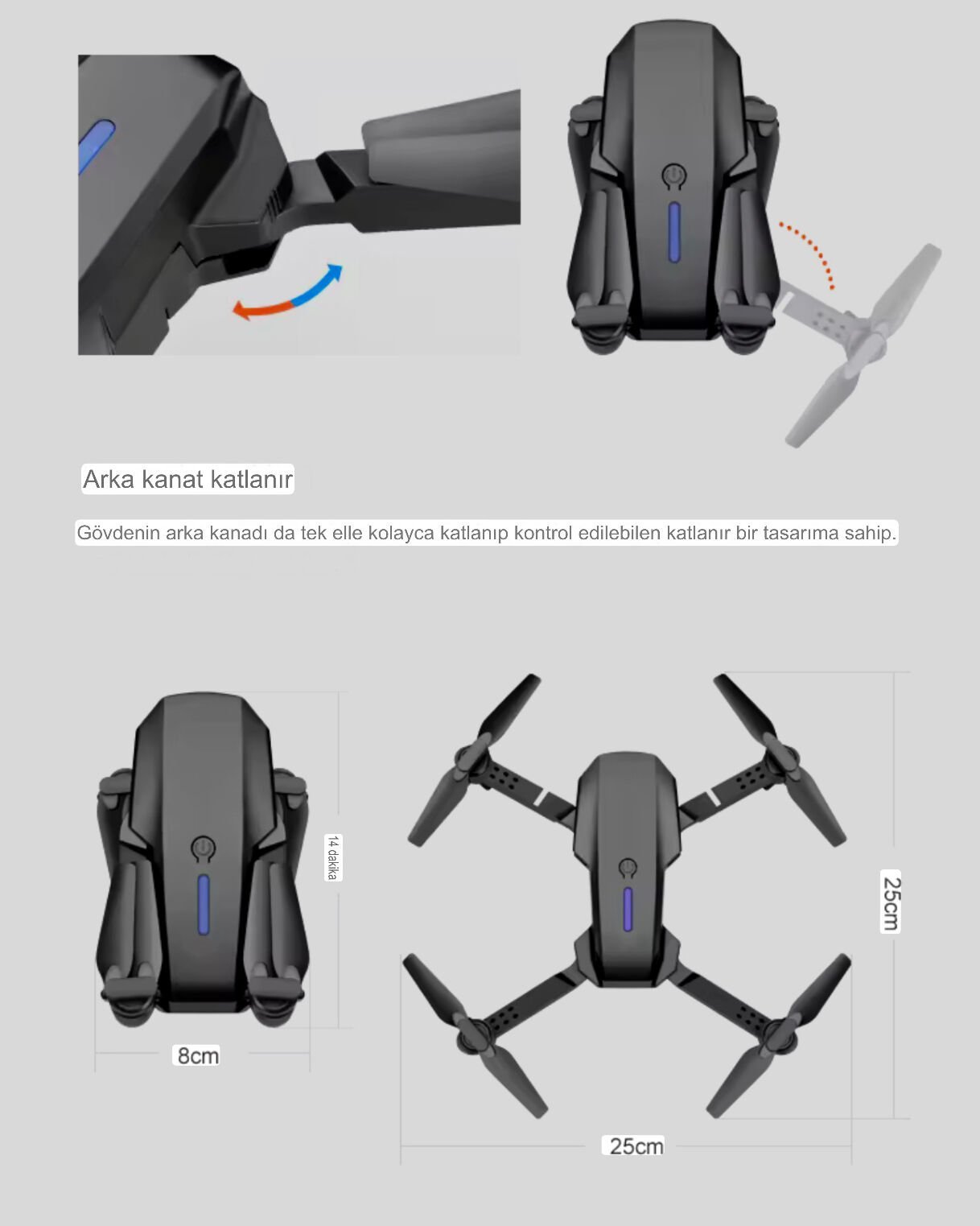 •Çoklu Uçuş Modları: 360° dönüş, sabit yükseklik modu ve daha fazlası.