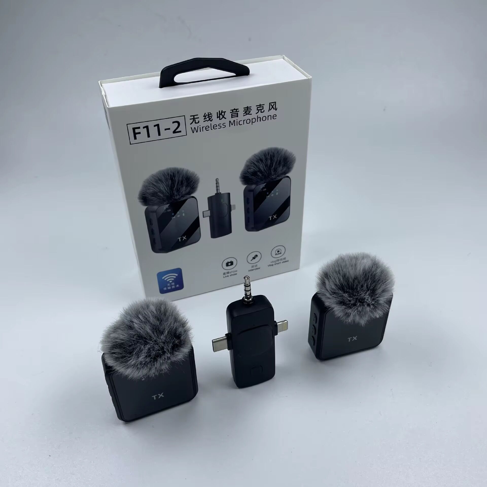 F11-2 Çift Tüylü Kablosuz Yaka Mikrofonu – iPhone, Android ve Kamera Uyumlu