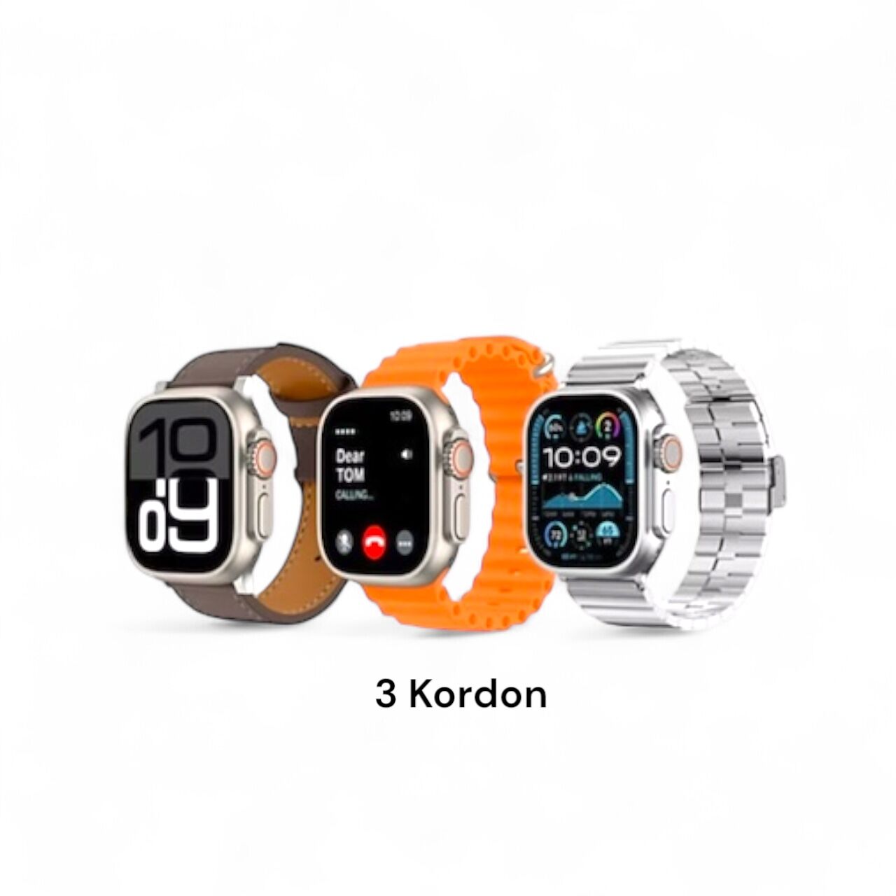 - 3 adet değiştirilebilir kordon (Metal, Deri, Silikon)