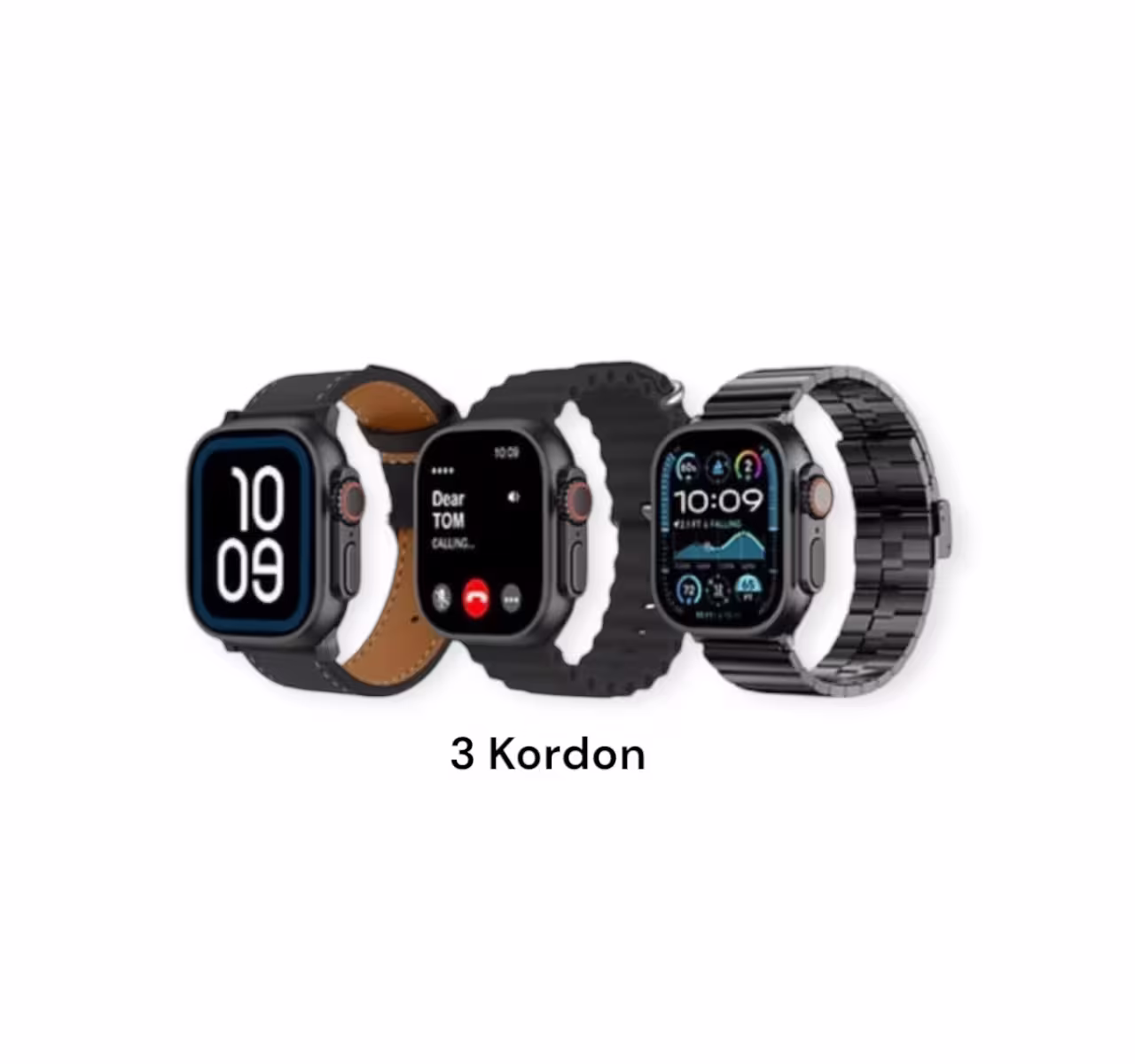 - 3 adet değiştirilebilir kordon (Metal, Deri, Silikon)