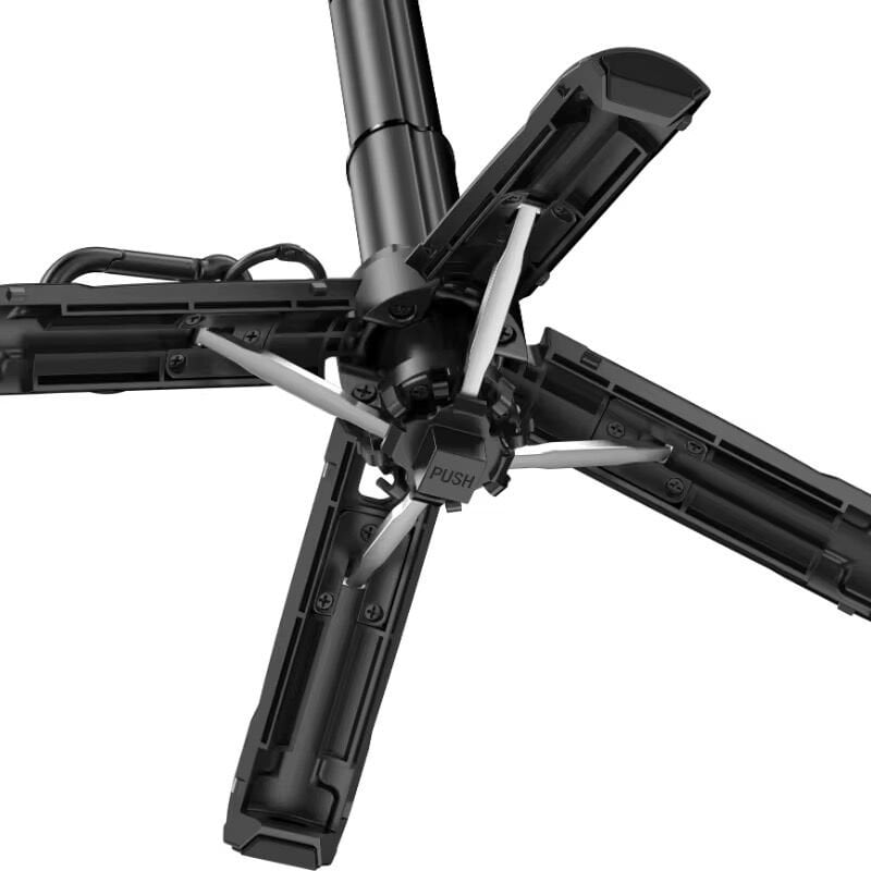 Tripodun alt kısmında bulunan katlanabilir ayaklar, düz zeminlerde sağlam duruş sağlar.