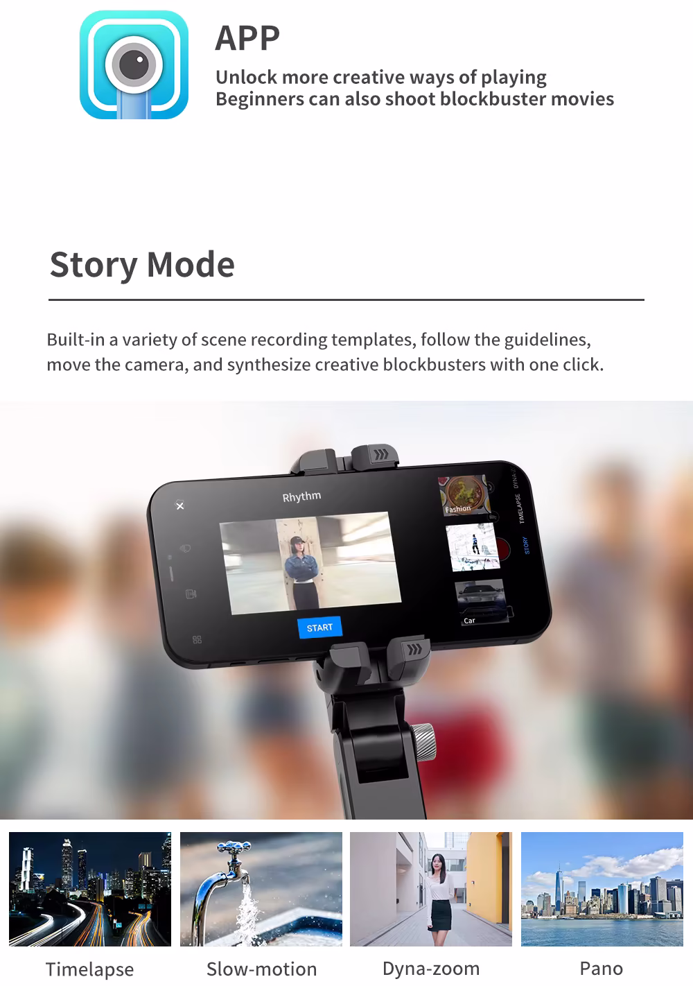 - Çoklu Efekt Modları: Timelapse, Ağır Çekim, Dinamik Zoom ve Panorama