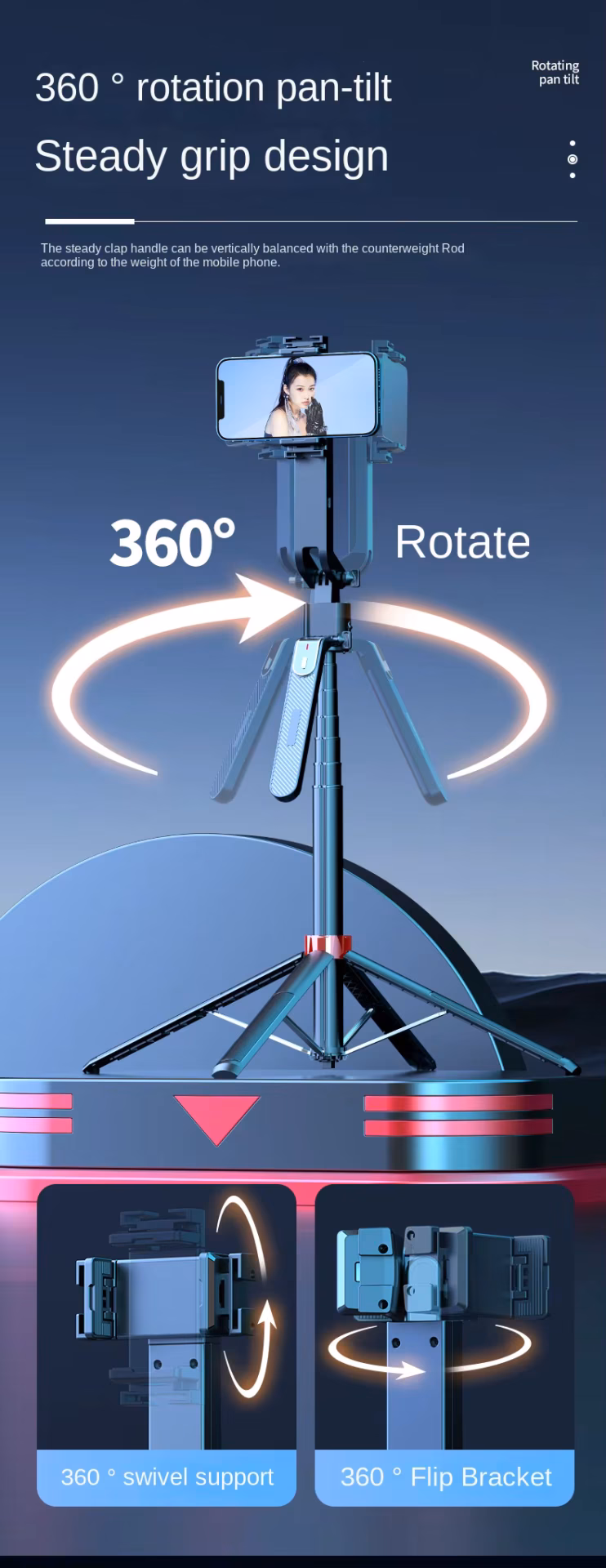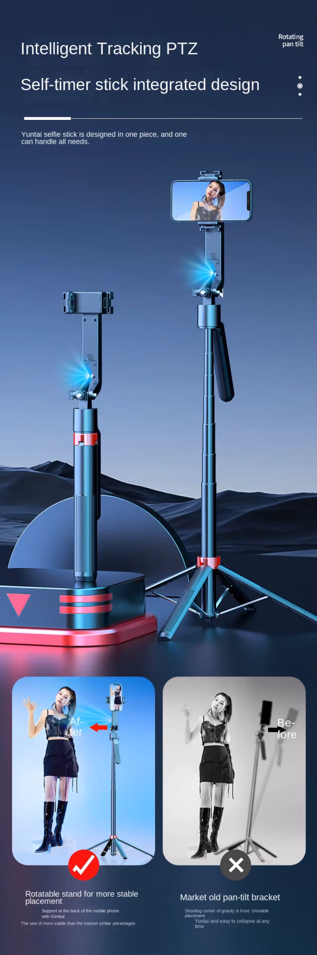 1.8 metreye kadar uzayabilen tripod tasarımı, masaüstü çekimlerden dış mekân vloglarına kadar farklı senaryolarda rahatlıkla kullanılabilir. 360° döner gimbal sabitleme sistemi titreşimleri azaltarak net ve pürüzsüz videolar elde etmenizi sağlar.