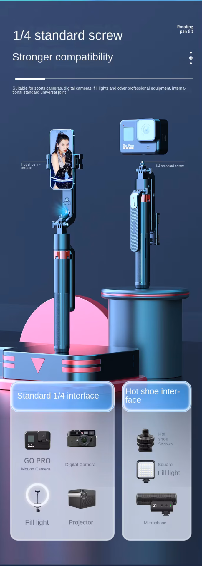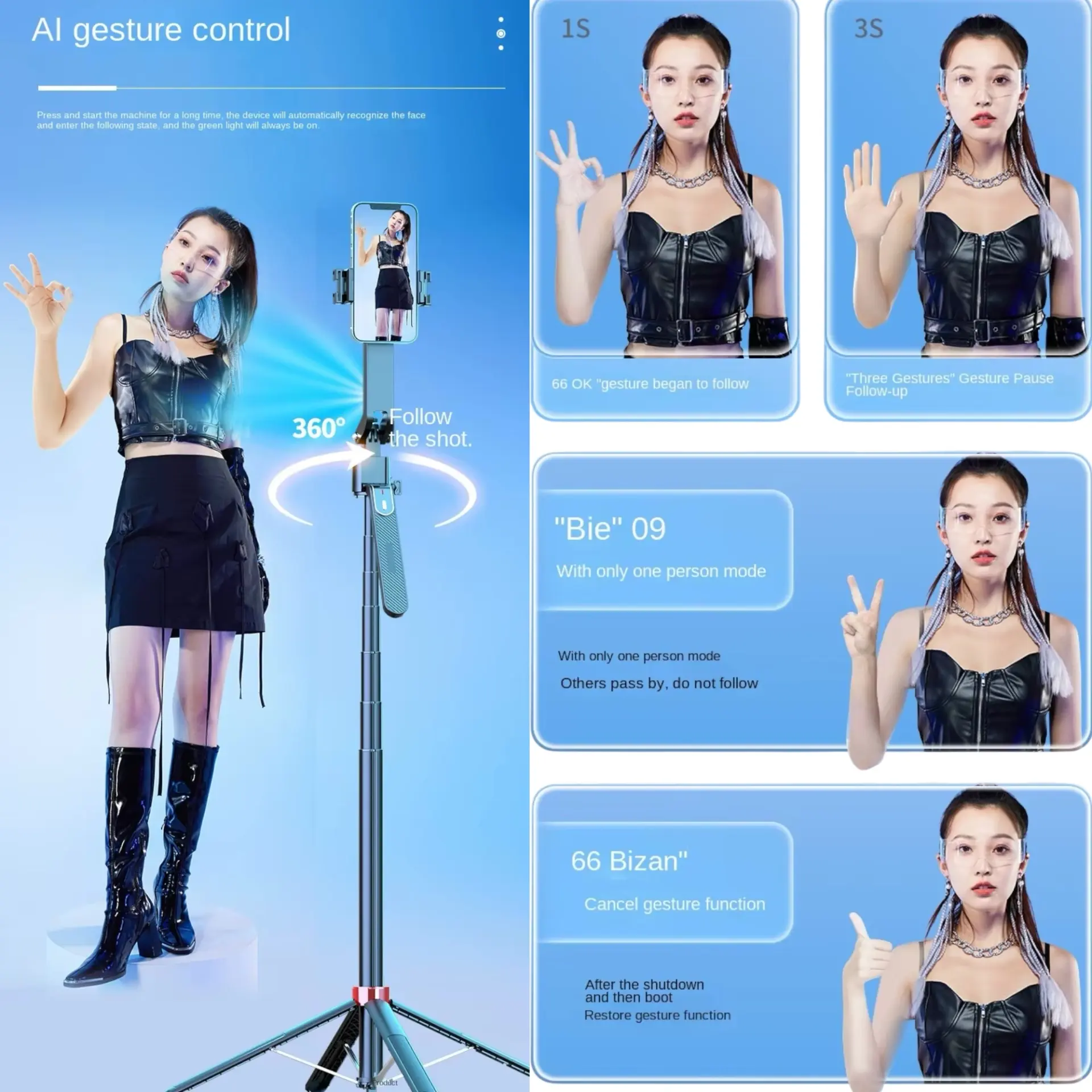 Q185 Selfie Çubuğu 1.8M Uzatılabilir Tripod Telefon Tutucu, akıllı yüz tanıma ve gesture kontrol özellikleriyle içerik üreticileri ve sosyal medya kullanıcıları için tasarlanmış yenilikçi bir aksesuardır. AI yüz takip teknolojisi sayesinde çekim sırasında sizi otomatik olarak takip eder ve her zaman kadrajda kalmanızı sağlar.