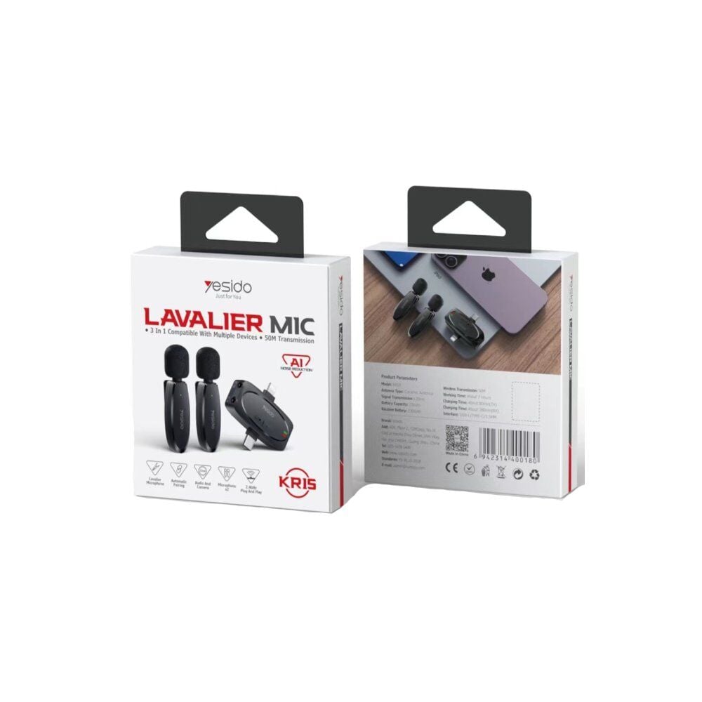 Yesido KR15 Kablosuz Profesyonel Yaka Mikrofonu - İçerik Üreticileri İçin İdeal Ses Çözümü